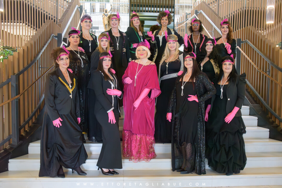 La stilista si ispira agli anni ’20 e veste le modelle curvy in chiave moderna. Sceglie il colore nero, e un tocco di fucsia, abbinati ad accessori tipici di quegli anni. Gli anni “ruggenti”, dove le donne abbandonano i corsetti rigidi per adottare silhouette lineari, comode e audaci. In questa collezione le protagoniste sono le gonne lunghe e gli abiti tubino, dall’indiscusso stile chic e molto elegante. Punta sugli accessori come fili di perle, fasce per capelli flapper e Charleston con piume di colore fucsia; e guanti fino al gomito in tinta che impreziosiscono il tutto. Il trucco è marcato per magnetizzare lo sguardo. Insomma, in passerella sfilano gli “Anni ruggenti” e si enfatizza l’energia che caratterizzava gli anni ’20, con mutamenti che andavano ad interessare l'aspetto sociale, quello artistico e, soprattutto, quello del dinamismo culturale di un'epoca ritenuta per molti versi irripetibile.